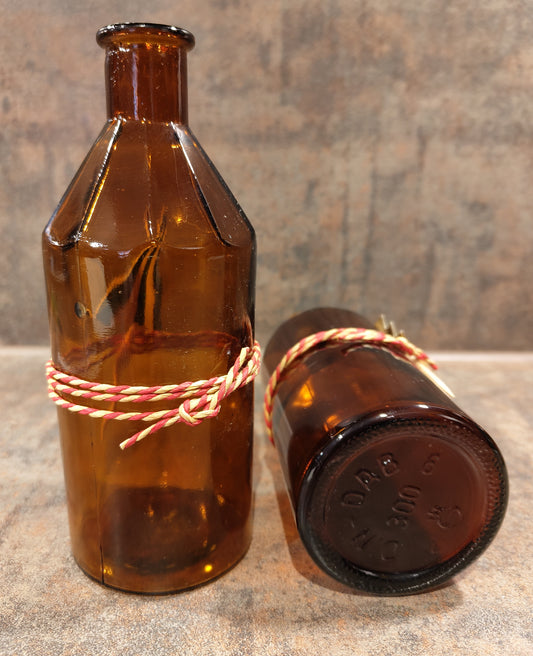 2 runde braune Apothekerflaschen mit Facetten 300 ml VINTAGE