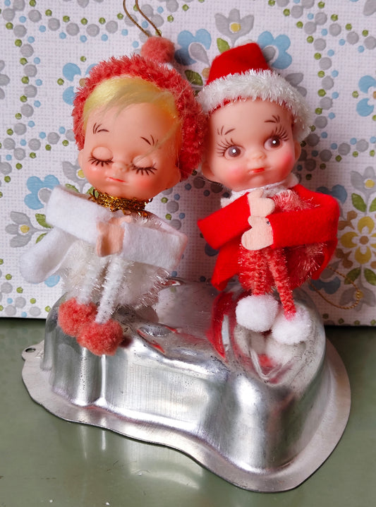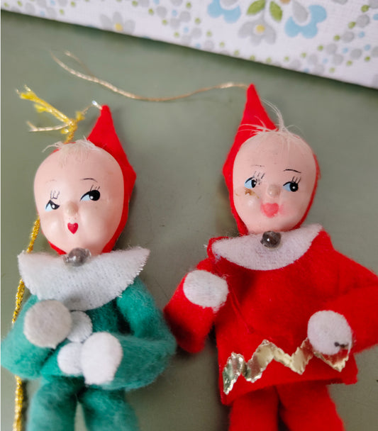 2 Pixie Weihnachtselfen aus Filz – Handgefertigte Deko aus den 1950ern für ein magisches Weihnachten