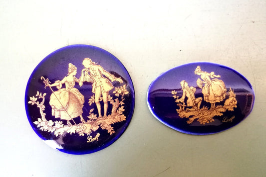 2er Set Limoges Porzellan Cabochon blau gold Vintage