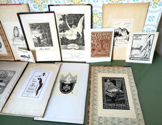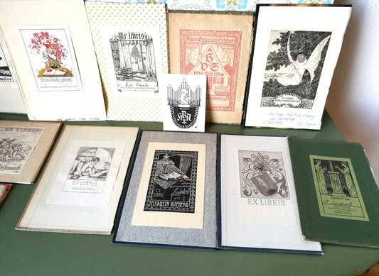 15 Stück Ex Libris aus alten Büchern VINTAGE 1920 - 1942 , Konvolut Nr. 2
