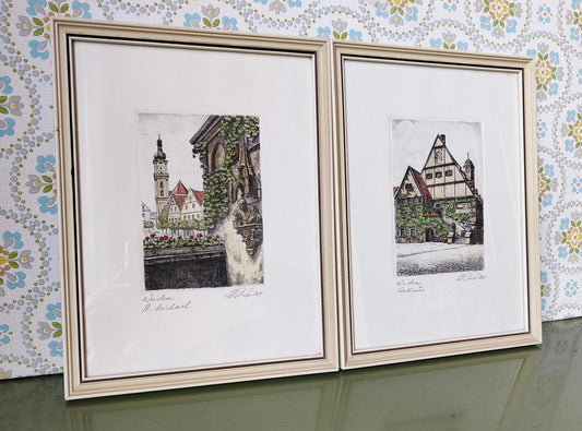 2 signierte Radierungen – St. Michael und Rathaus Weiden – Künstlergrafik, wohl 20. Jahrhundert , Künstler Reiter