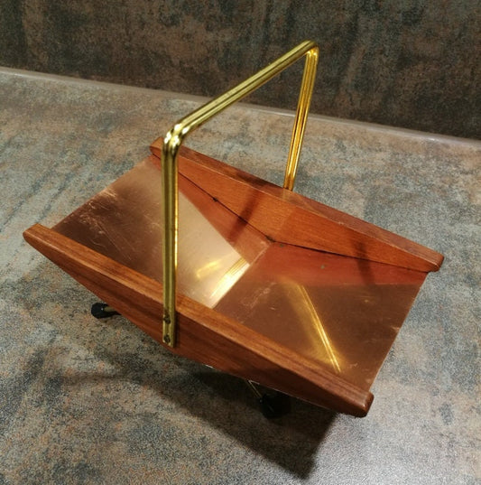 1950er eckige Schale aus Messing mit Teakholz Griff Nr.3