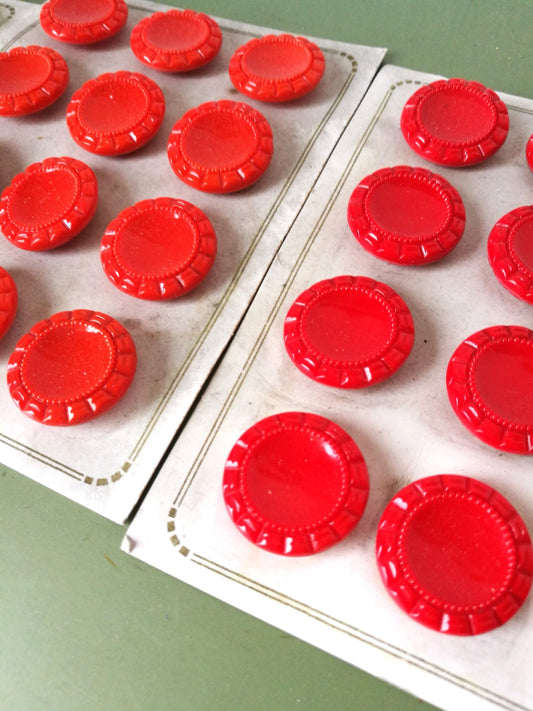 12 Knöpfe aus Glas auf Pappe VINTAGE in dunklem orange oder rot wählbar