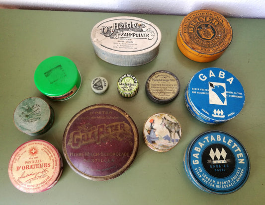 12 runde Dosen Schachteln historische Verpackungen Konvolut VINTAGE ab ca 1900