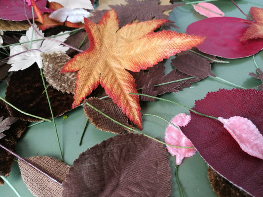 100 Stück bunte Floristik Blätter mit Metallreif DIY Deko VINTAGE SONDERPREIS